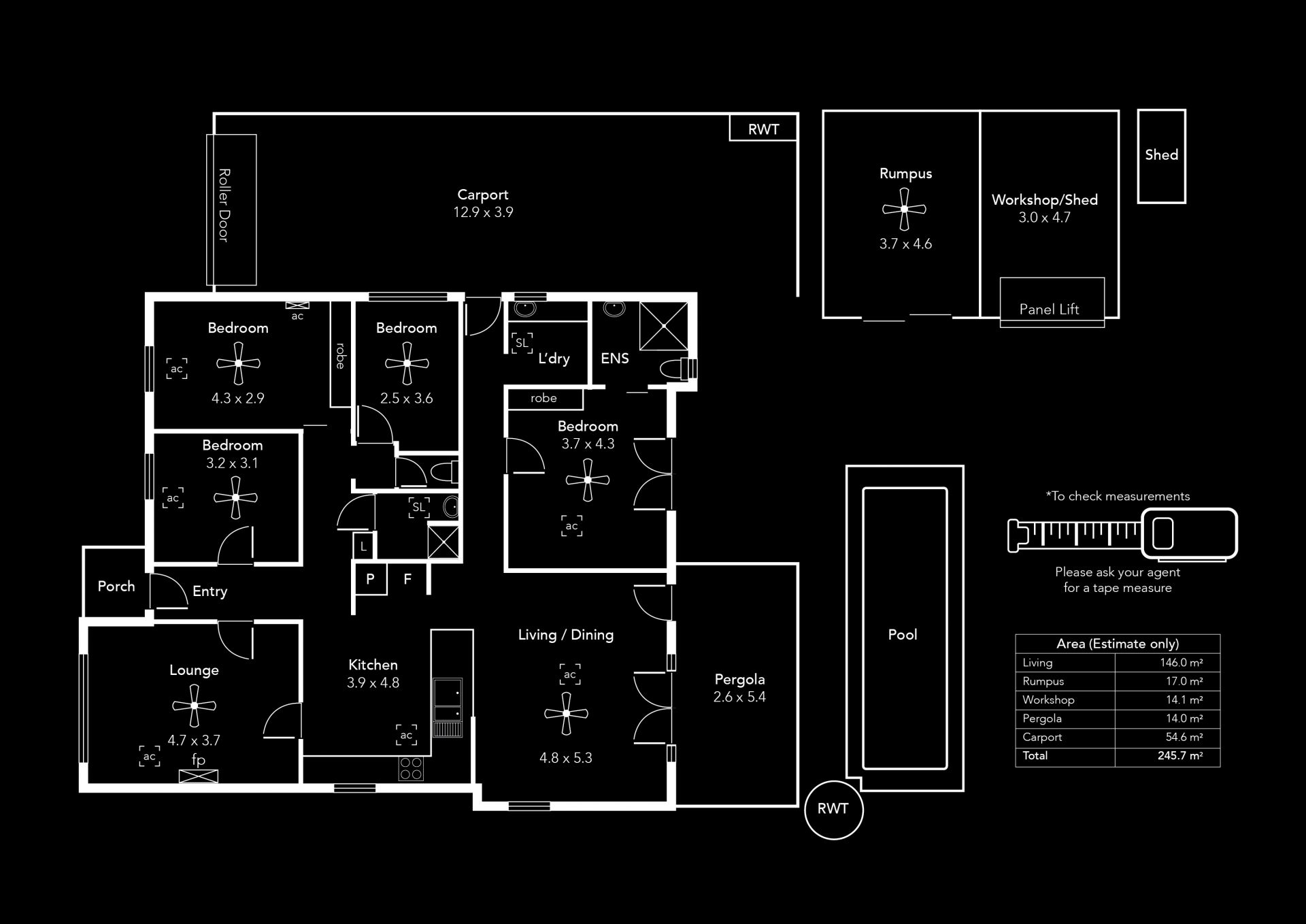• Renovated bathroom and separate w/c servicing three more bedrooms with quality carpets, ducted a/c and fans.