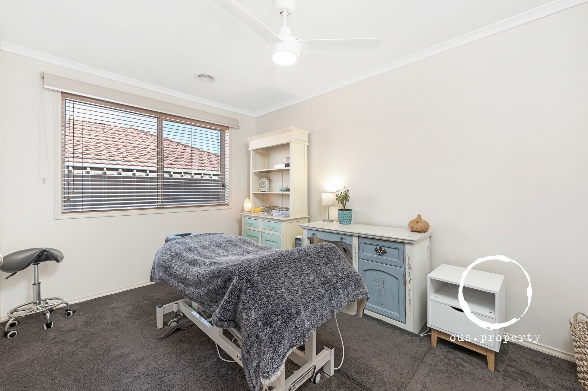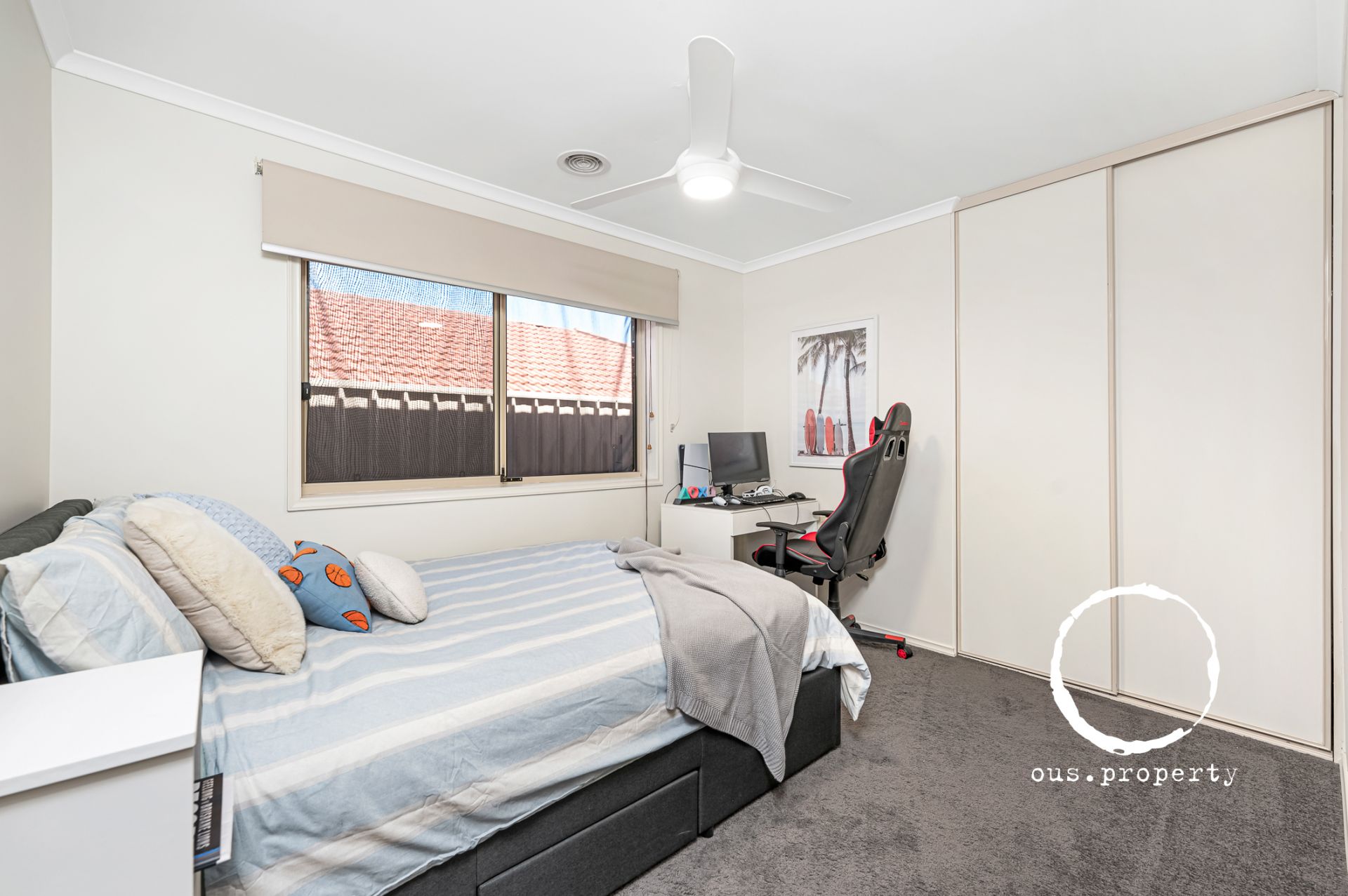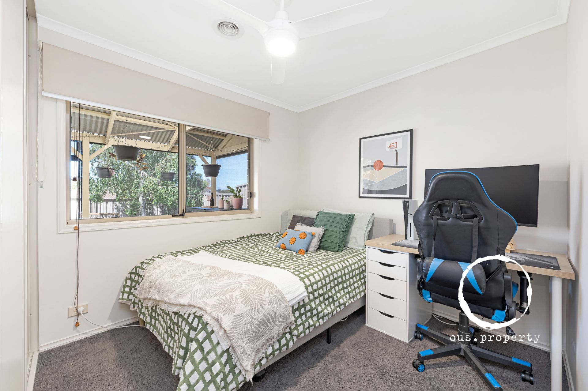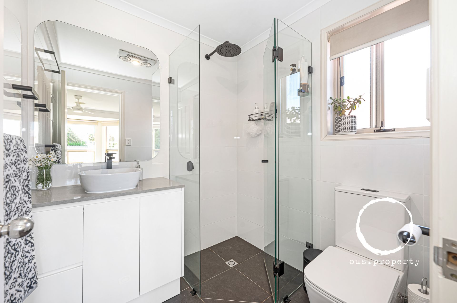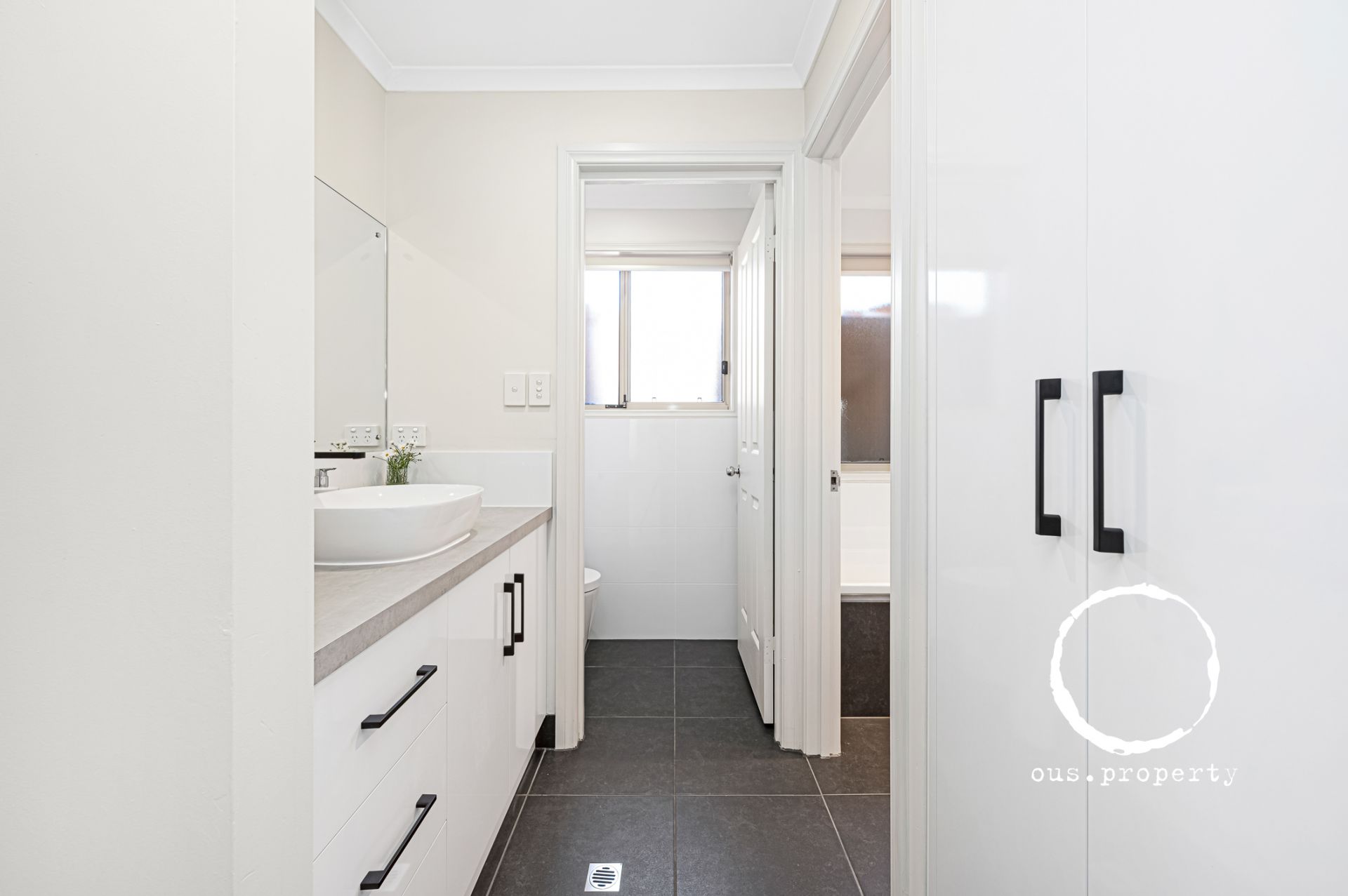 The home offers four comfortable bedrooms, including a master suite at the front with a walk-in robe and ensuite. Bedrooms two, three, and four each include built-in robes and are serviced by a family bathroom with a bath, separate vanity area, and toilet.