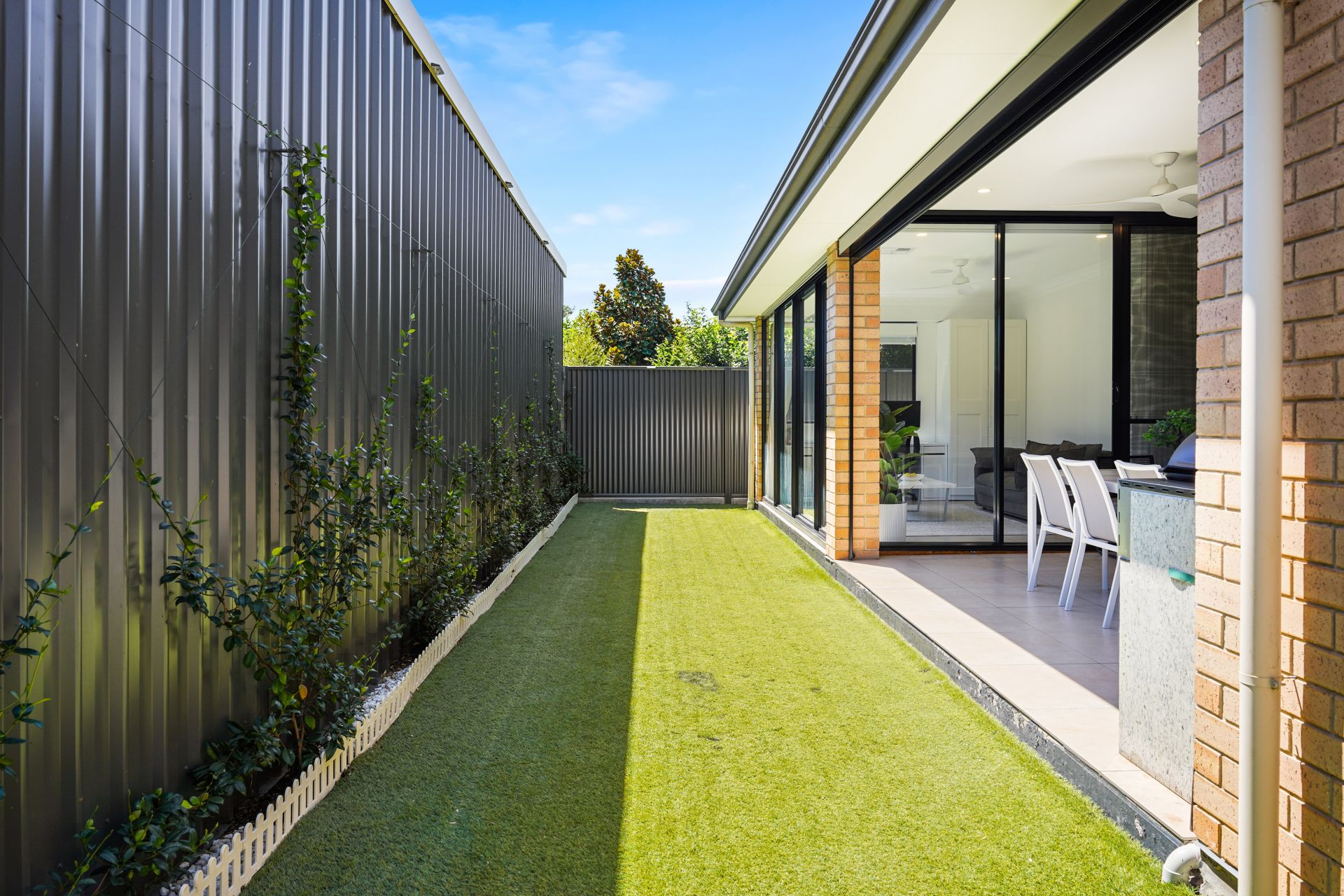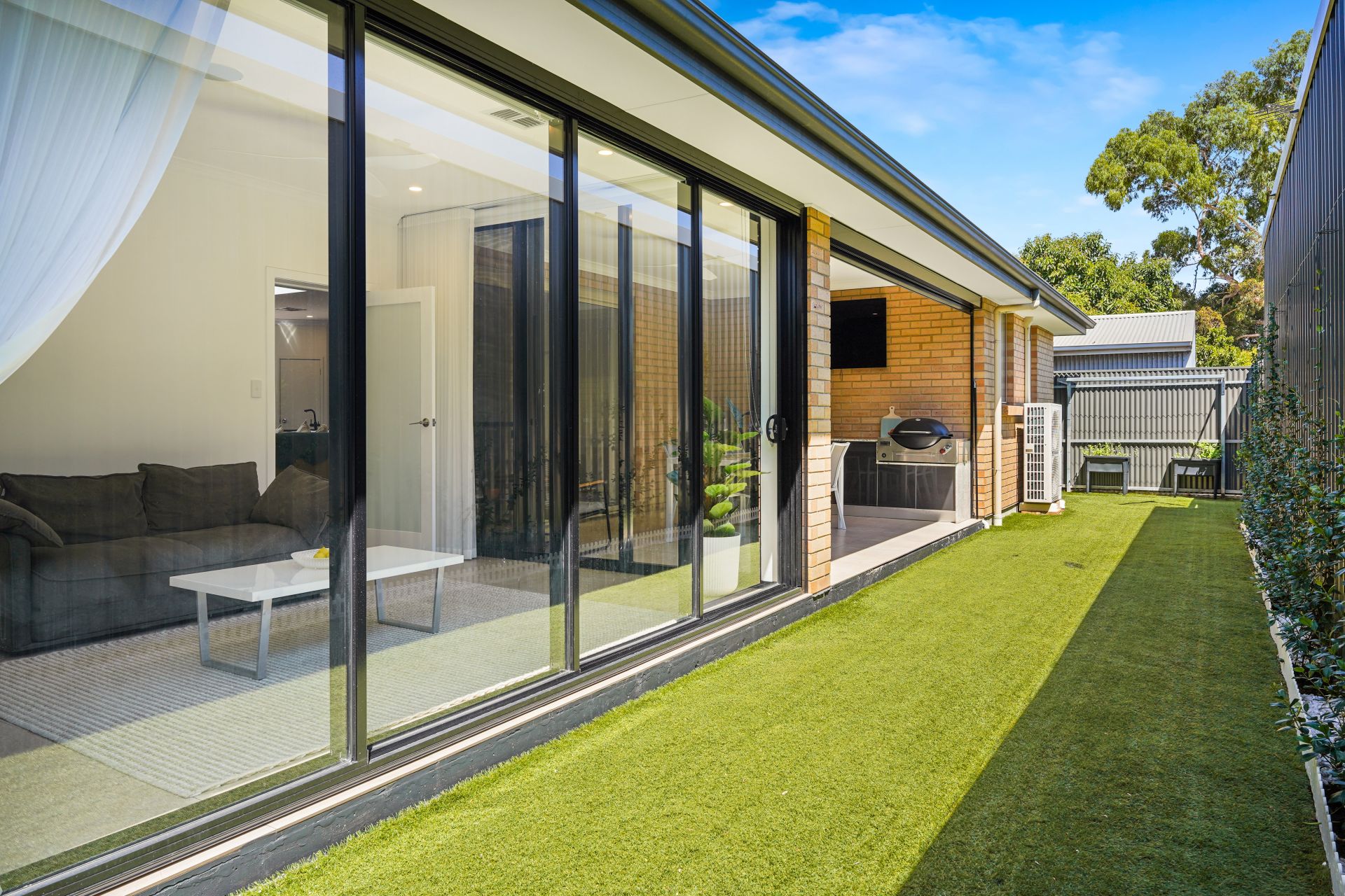 Step outside to the covered alfresco entertaining area, complete with an outdoor kitchen, Weber gas BBQ, café blinds, ceiling fan and synthetic lawn-perfect for year-round entertaining. The landscaped grounds are manicured and low-maintenance, thoughtfully designed for efficiency, convenience and ease of upkeep.