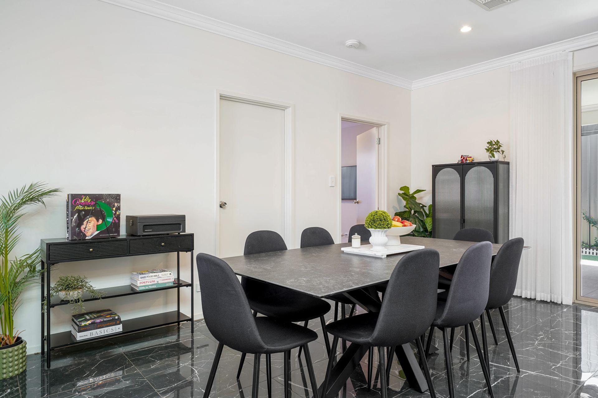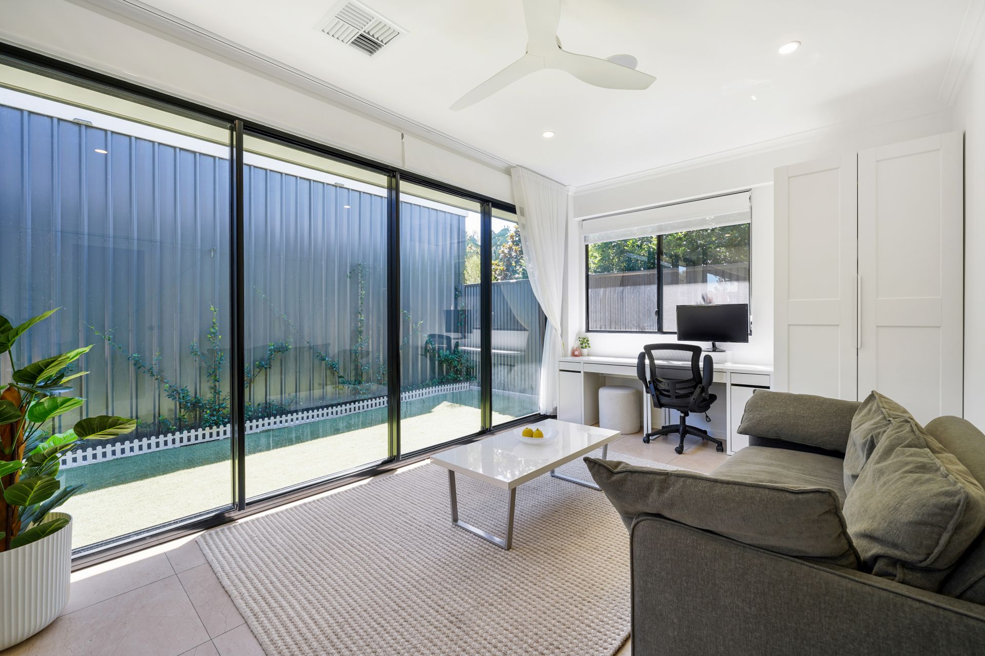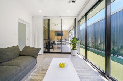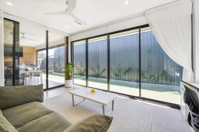 The adjacent open-plan living and dining zones are filled with natural light, enhanced by premium sliding doors that create a seamless connection to the outdoors. A standout feature of the home is its versatility-offering the flexibility to configure as a four-bedroom residence or alternatively utilise the additional space as a home office or secondary living area, complete with commercial-grade sliding doors and a separate entertaining zone.