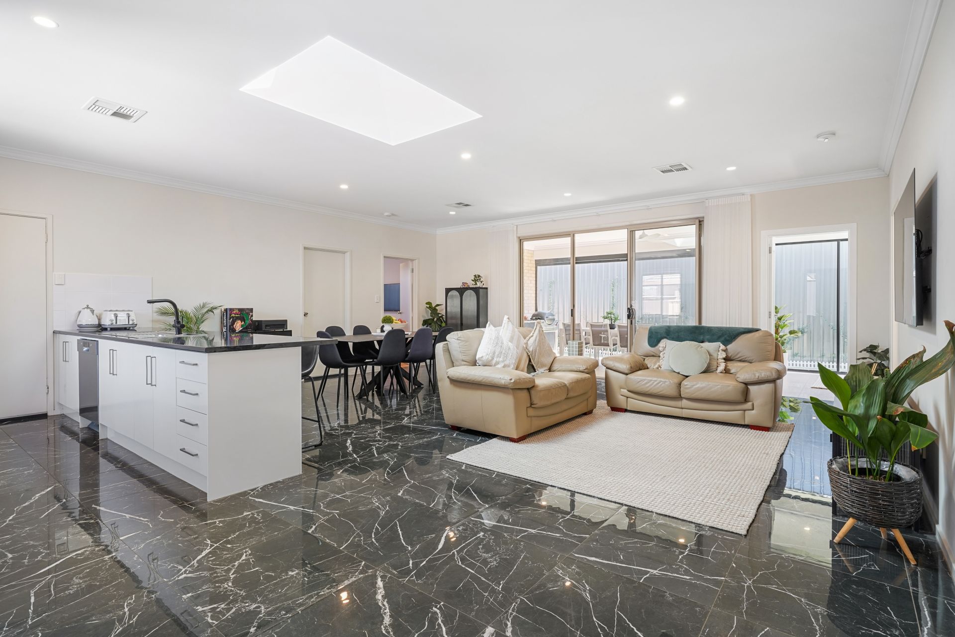 Showcasing stylish modern finishes throughout, the home features LED lighting, impressive high ceilings, seamless indoor-outdoor integration and a suite of quality inclusions designed to enhance relaxed, modern living.