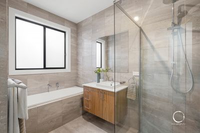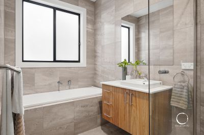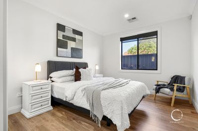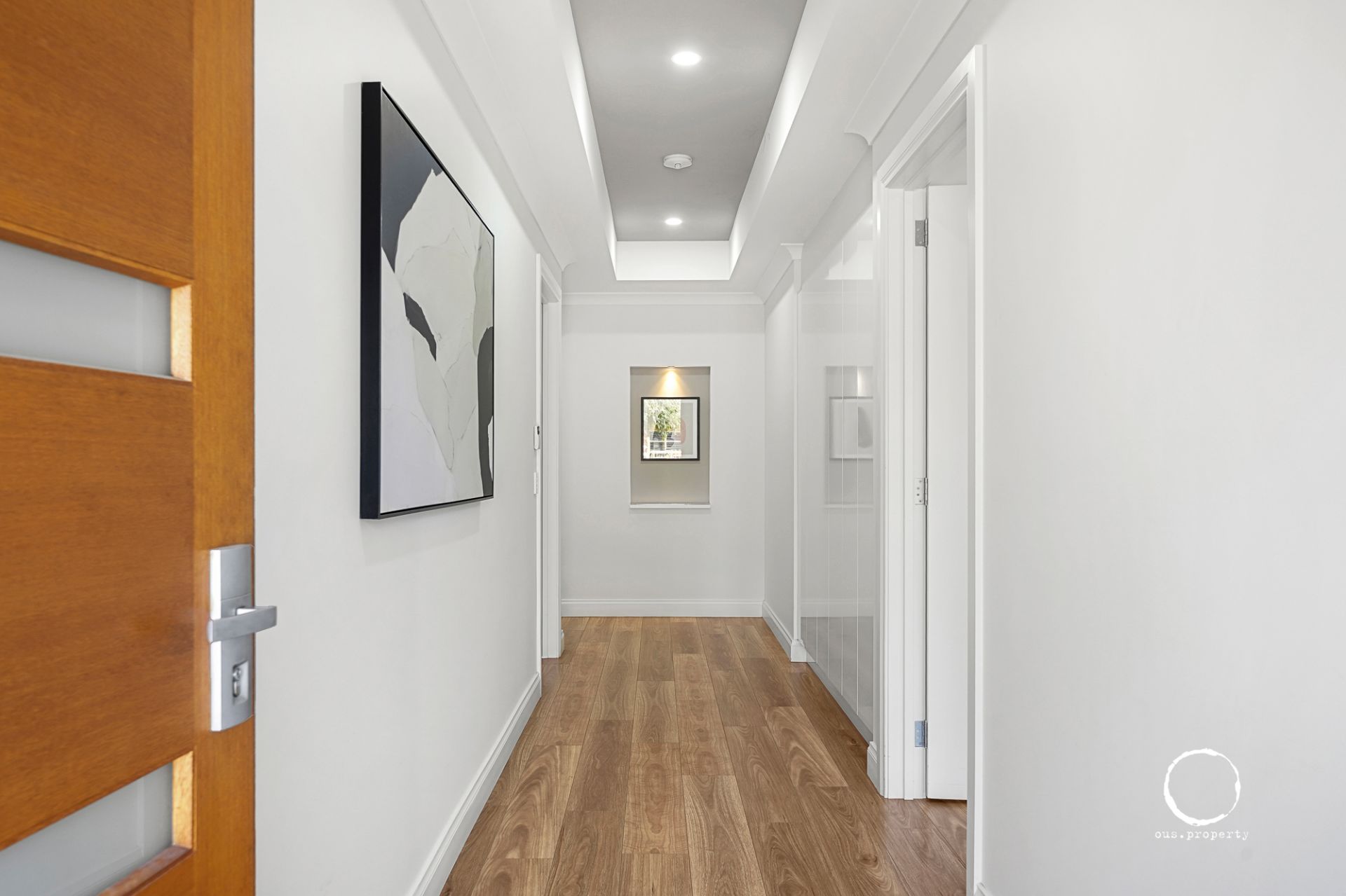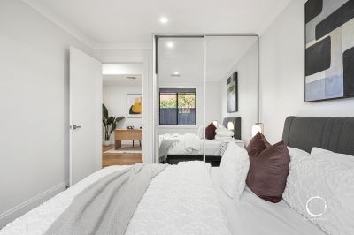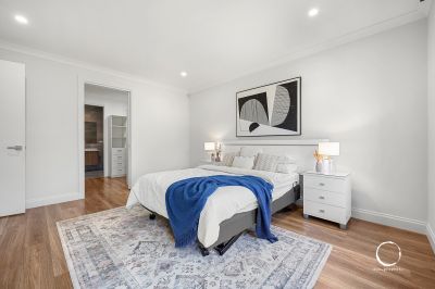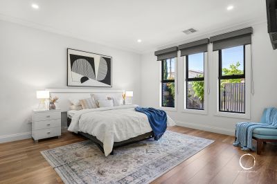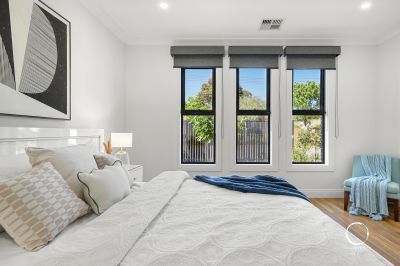 The sense of space continues with soaring 9ft ceilings and premium timber flooring throughout. Accommodation includes three spacious bedrooms, each designed with comfort in mind. The master suite is beautiful featuring a walk-in robe and a luxurious en-suite with dual 'His & Her' vanities, while bedrooms two and three include built-in mirrored robes for ample storage.