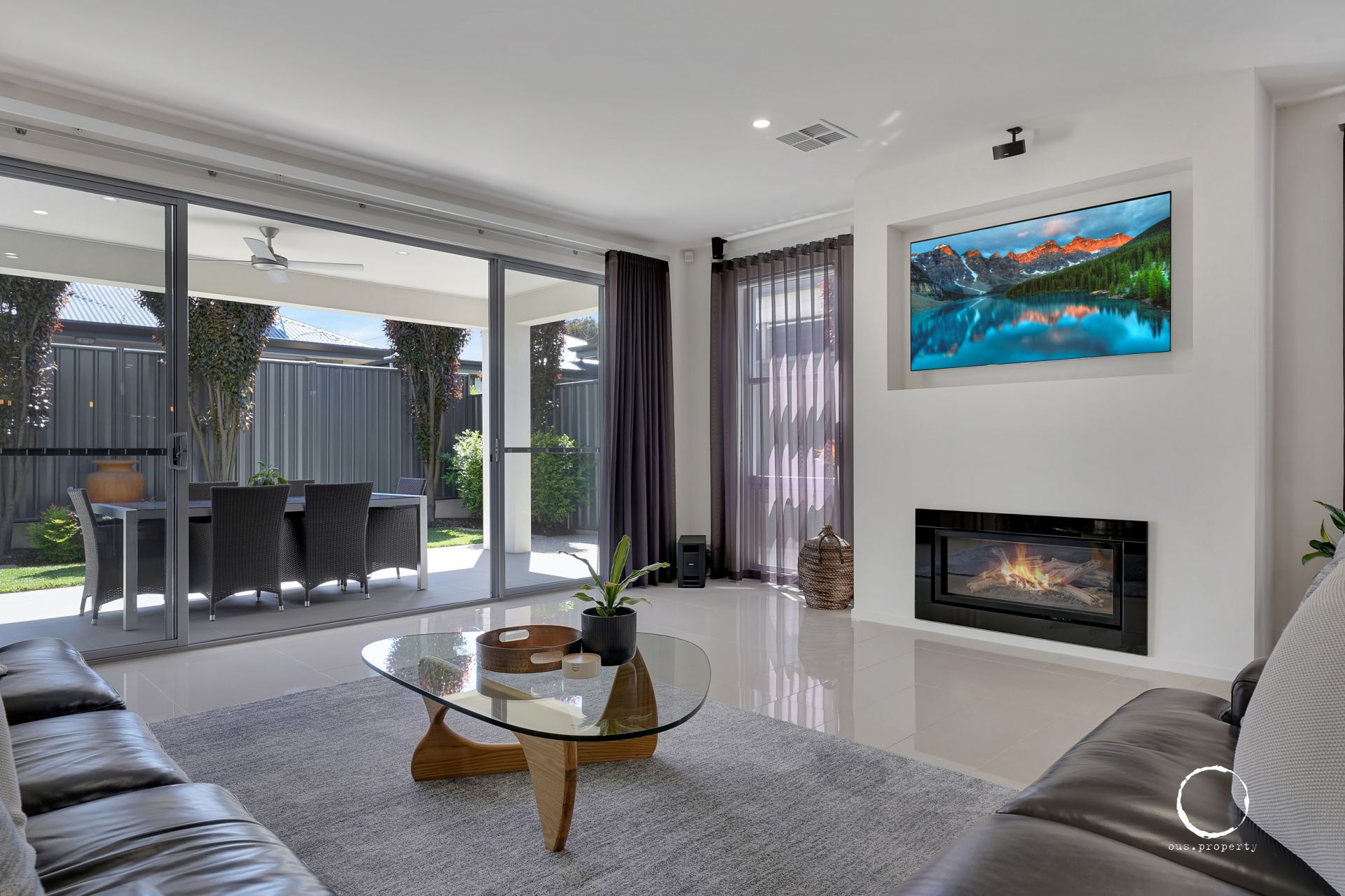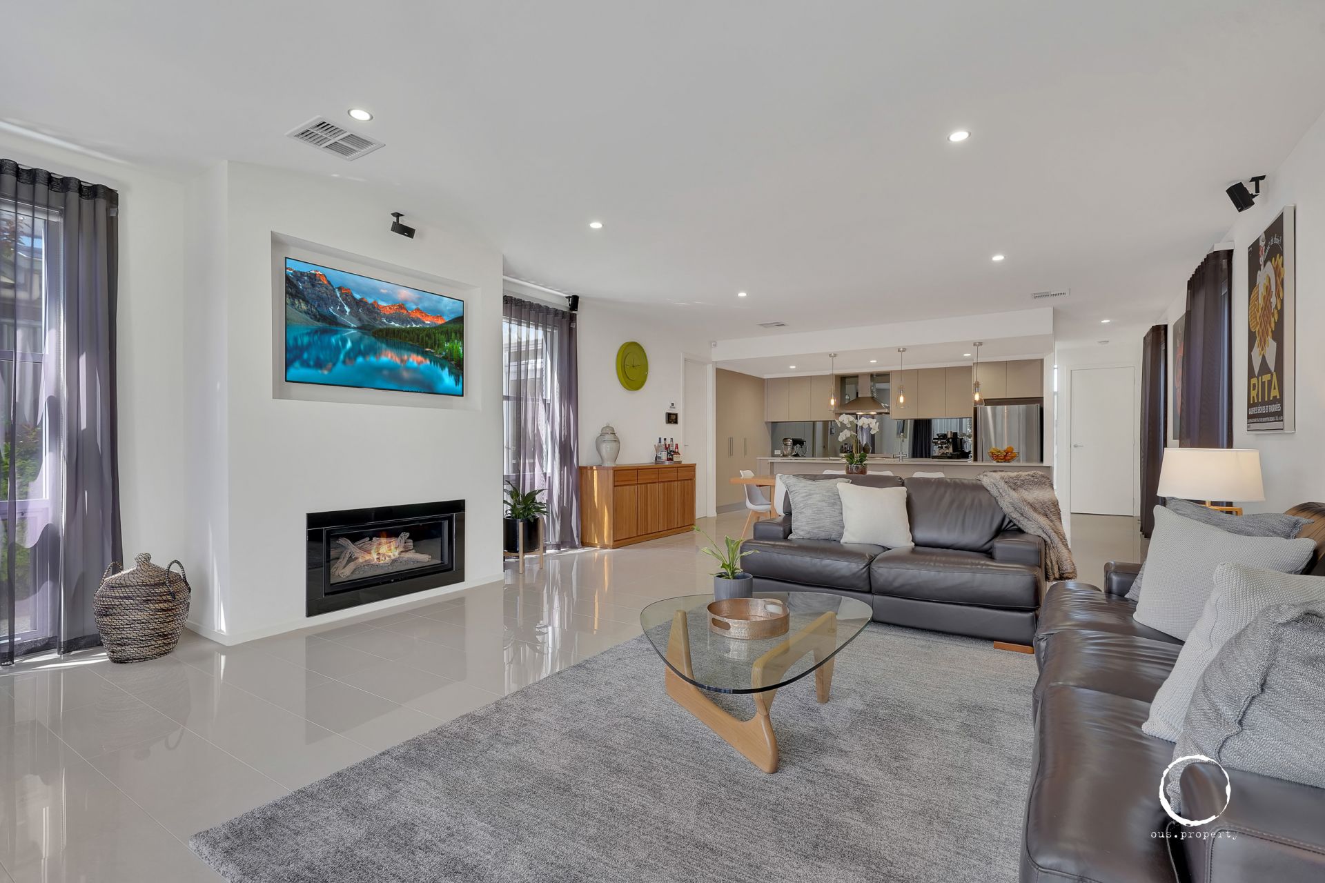 - Open plan living/dining with feature gas log fire place