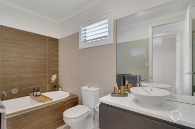 Upstairs, the spacious master suite boasts plantation shutters, a luxurious walk-in robe, and a private ensuite. Two additional bedrooms, each with built-in robes, share a separate bathroom and a flexible retreat area.