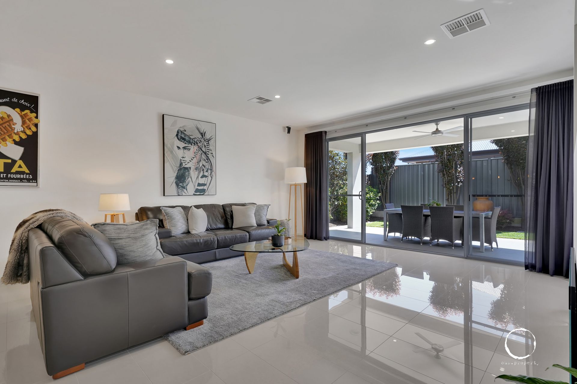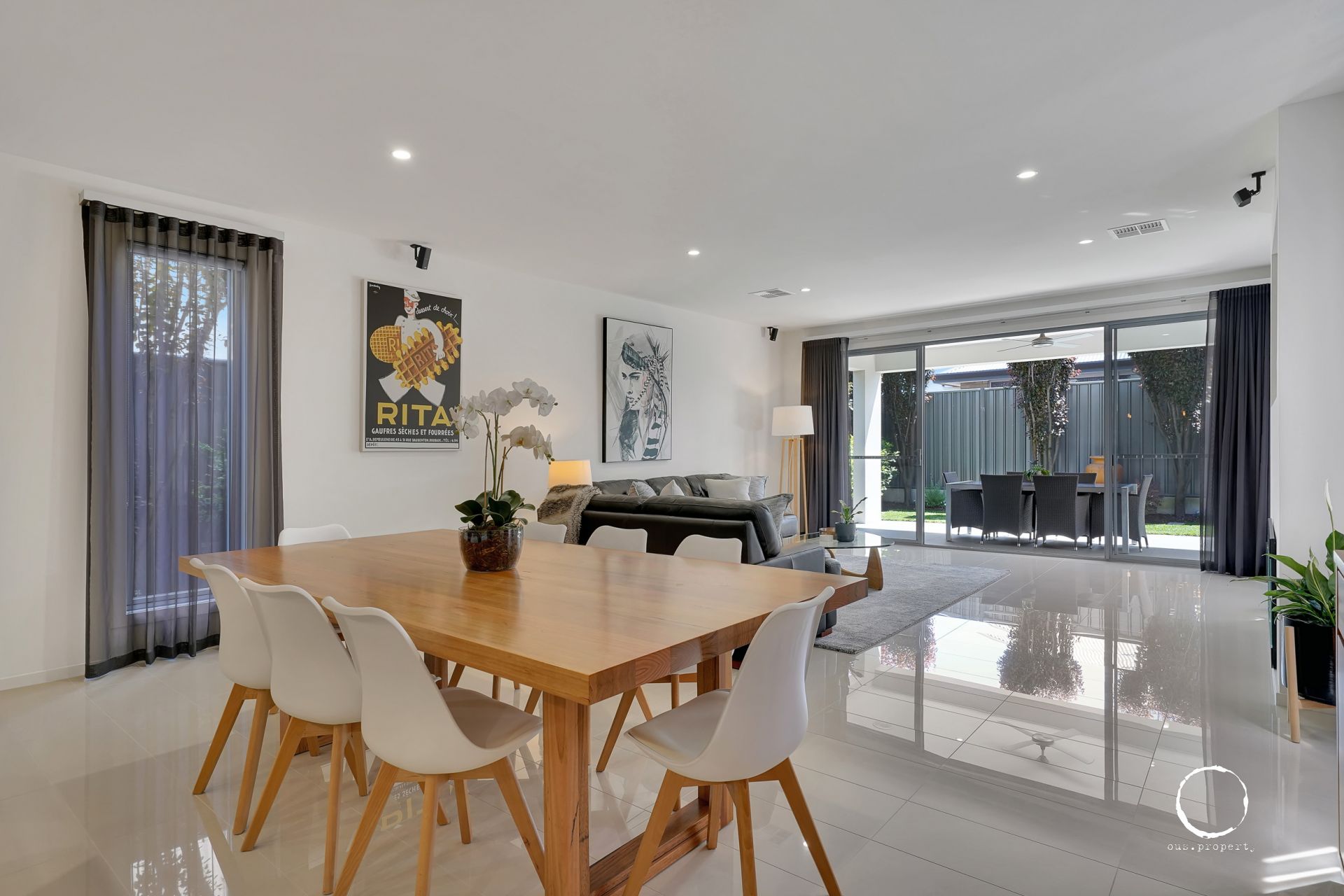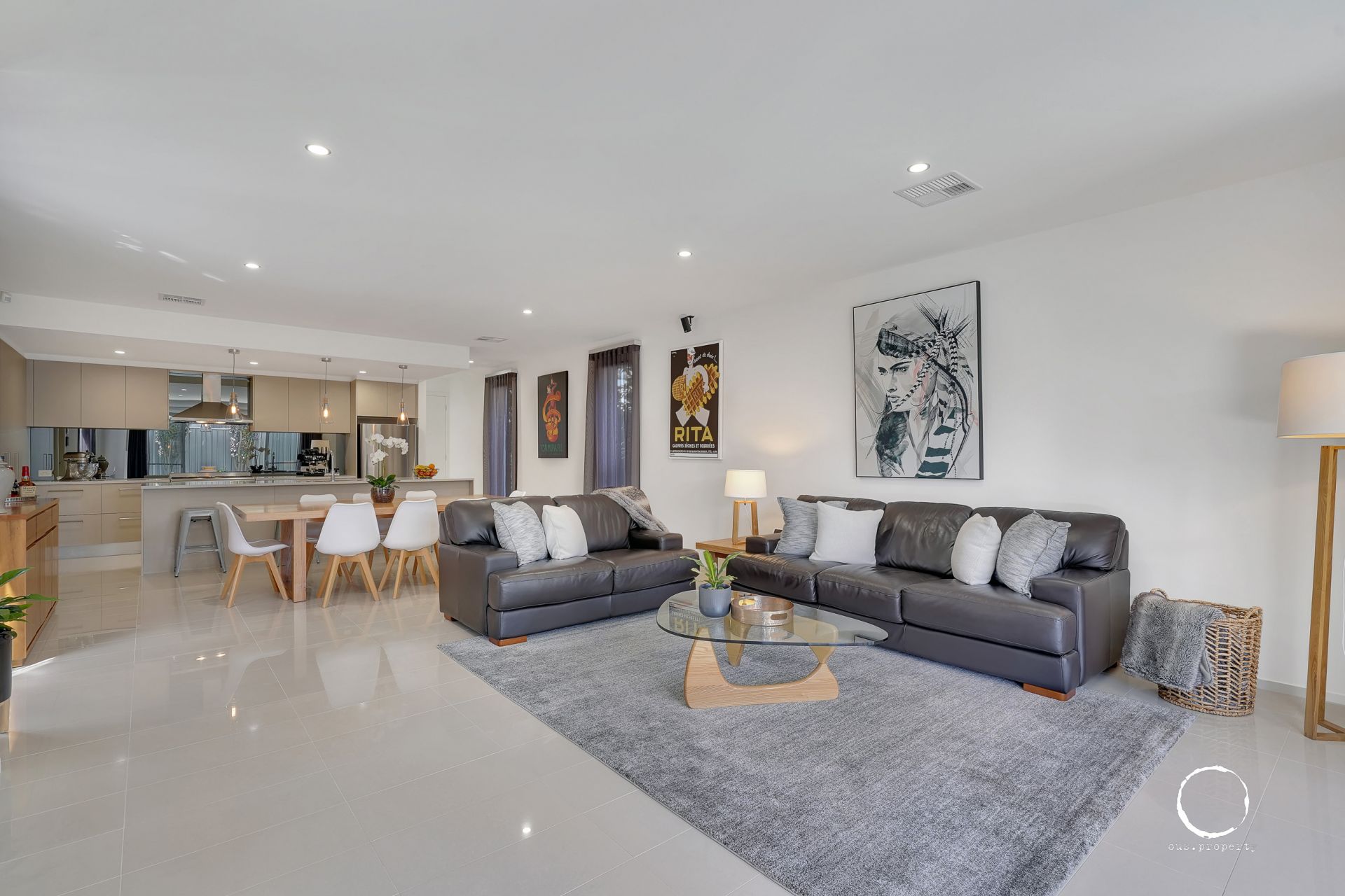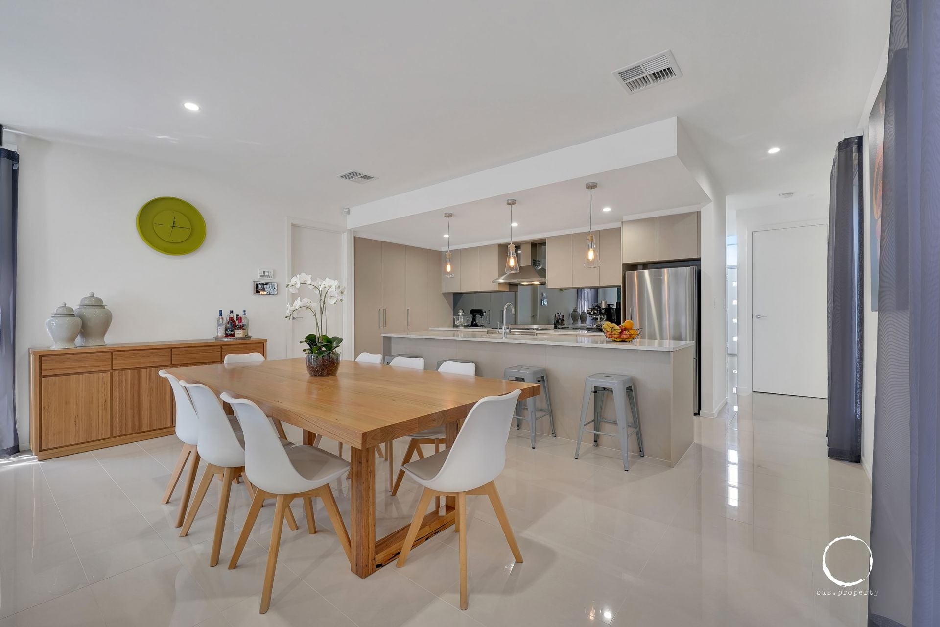 Entering through the double doors, you're greeted with a light-filled double-height entry foyer which sets the tone for what lies ahead. Beyond, the generous ceiling height continues the airy atmosphere, enhanced by a soothing café latte colour palette throughout.