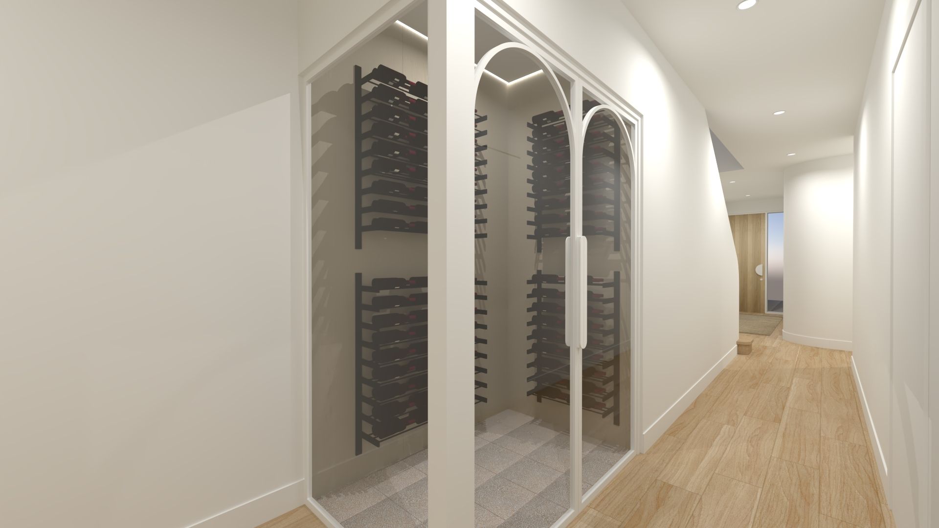 From the moment you enter, you will notice the impressive hallway and beautiful design that leads to the stairs and glass wine room. The ground floor features a luxurious master suite with ensuite, along with a generous open-plan living and entertaining area designed to impress families of all sizes.