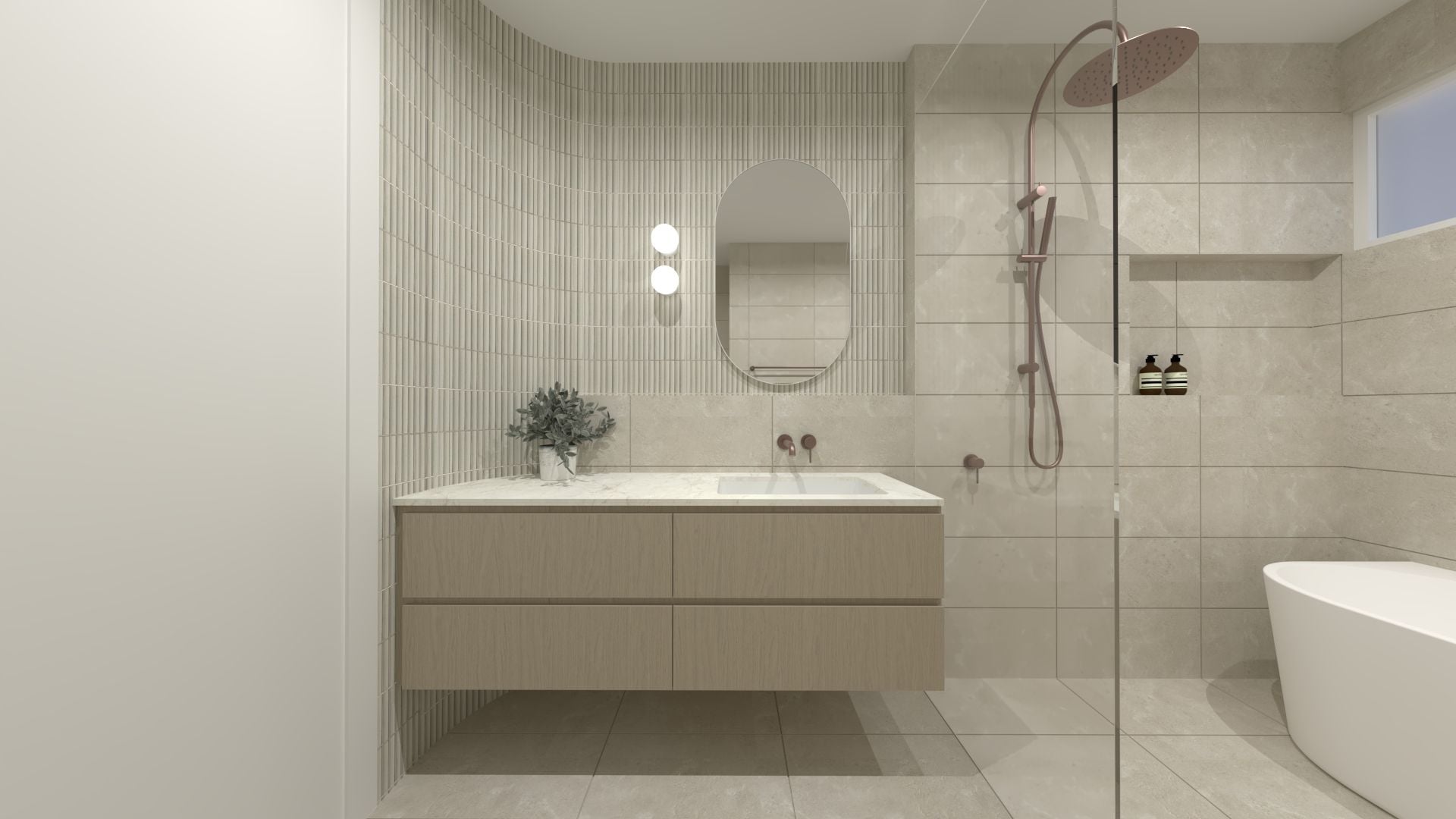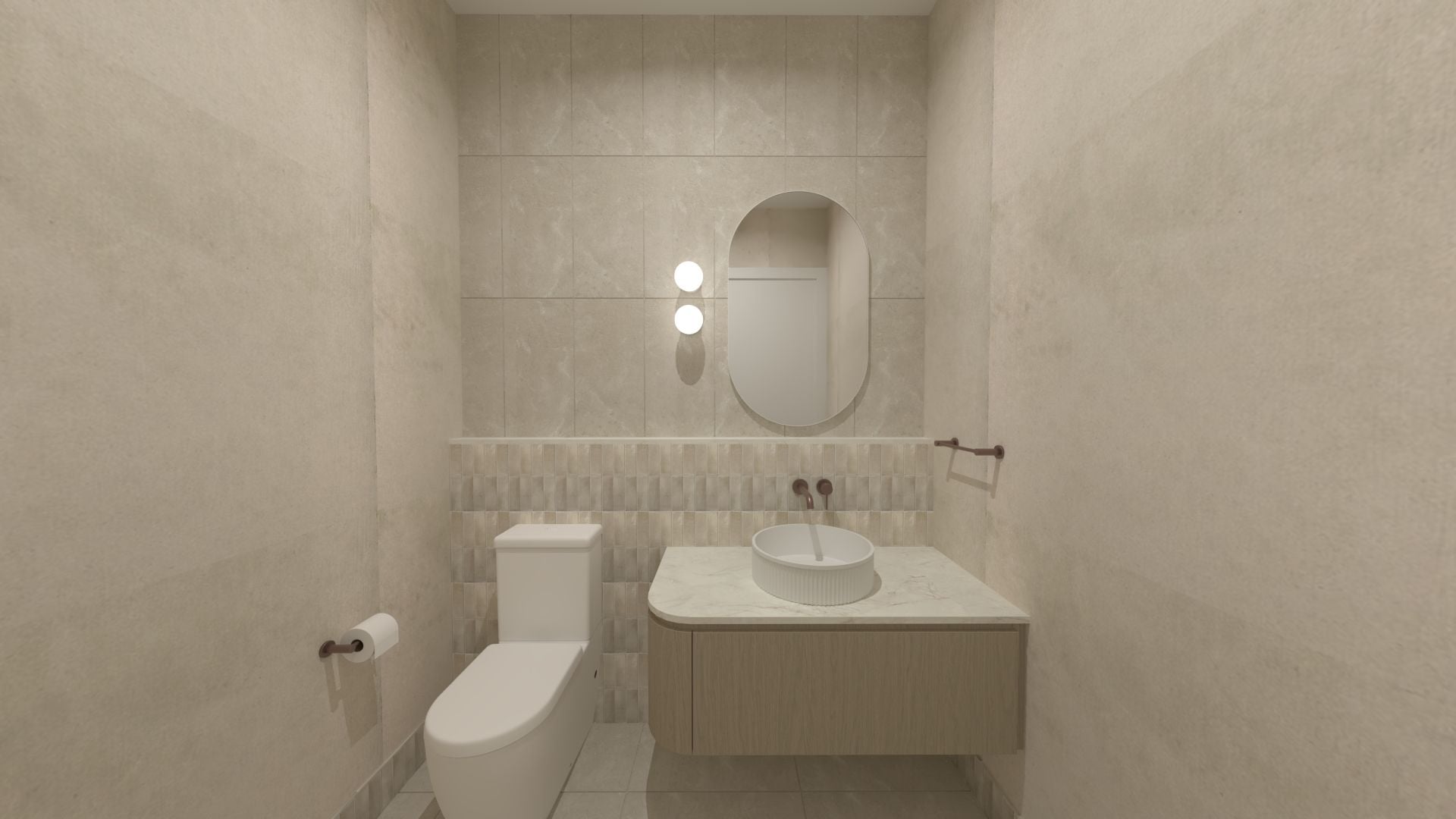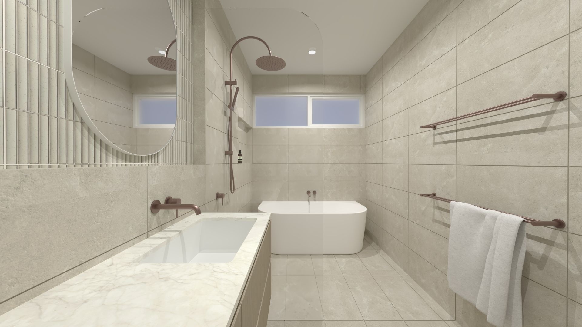 Upstairs, the home offers three spacious bedrooms, including a second master retreat highlighted by a striking curved feature wall and high-end finishes throughout.
