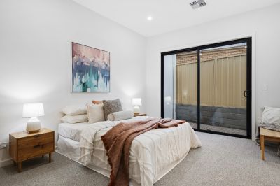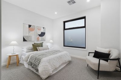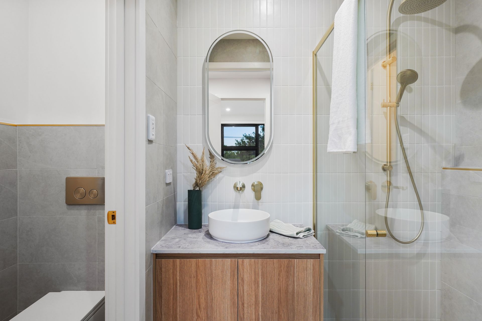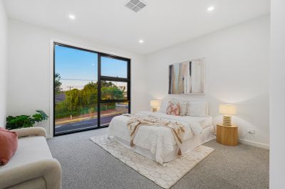 The upper-level master suite offers a private sanctuary, complete with an impressive walk-in robe and a breathtaking designer ensuite that delivers a true sense of indulgence.