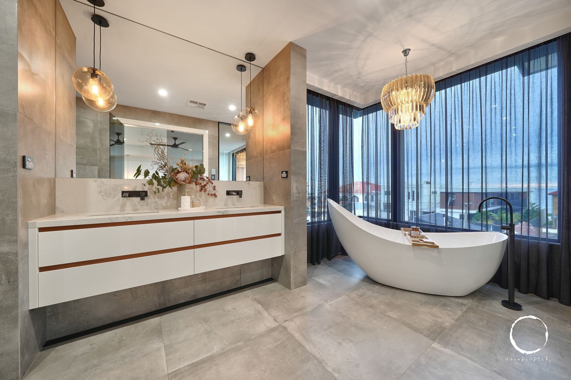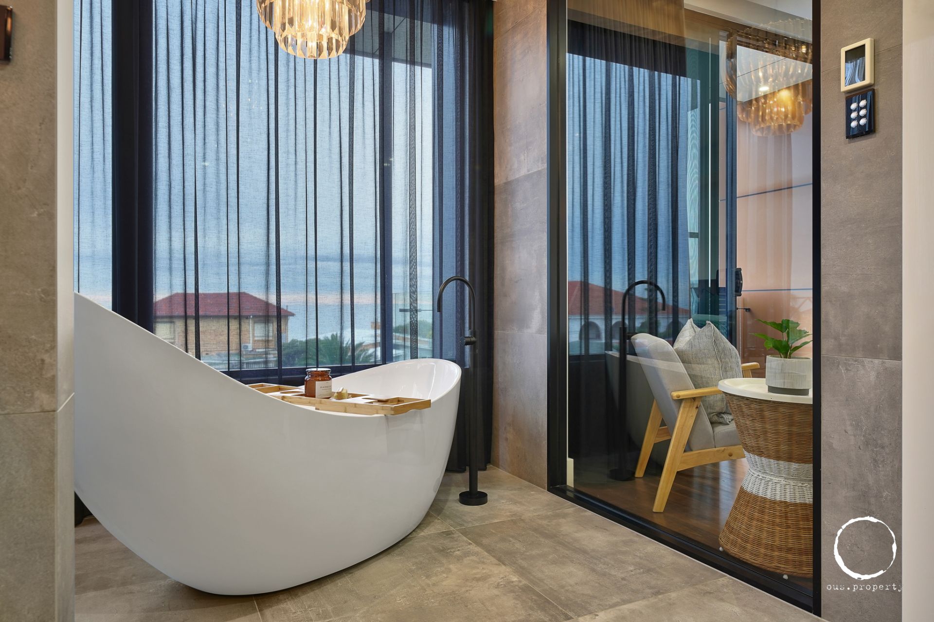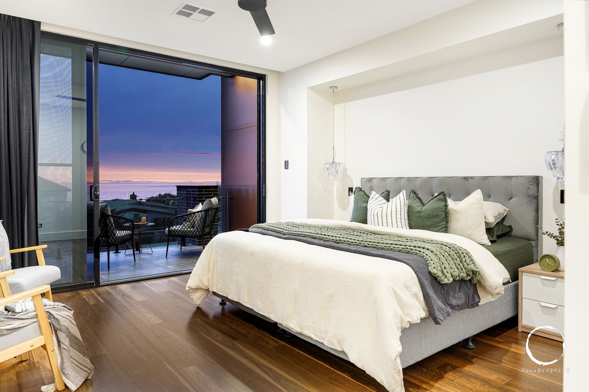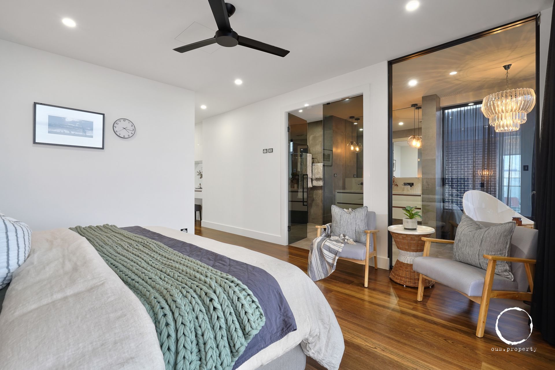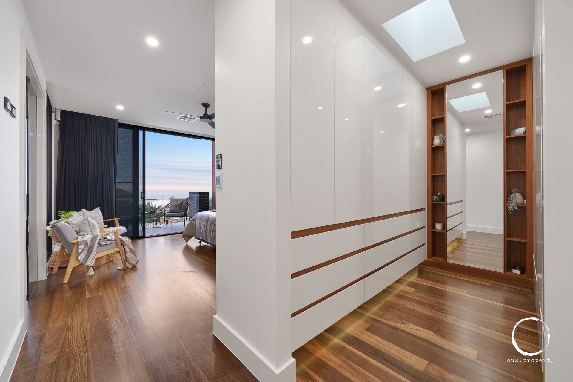 Take the lift or the solid walnut timber staircase to the second floor, where four sumptuous bedrooms, an open-concept lounge with a built-in desk and two luxuriously-appointed bathrooms leave a lasting impression. And if it's a luxury resort style of master bedroom you seek check in right here: it is huge and beautifully finished with a runway model's walk-in robe, a stunning double ensuite with heated floors and a freestanding bathtub, and a gorgeous balcony from which to sit beneath the twinkling stars and enjoy the evening sea breeze.