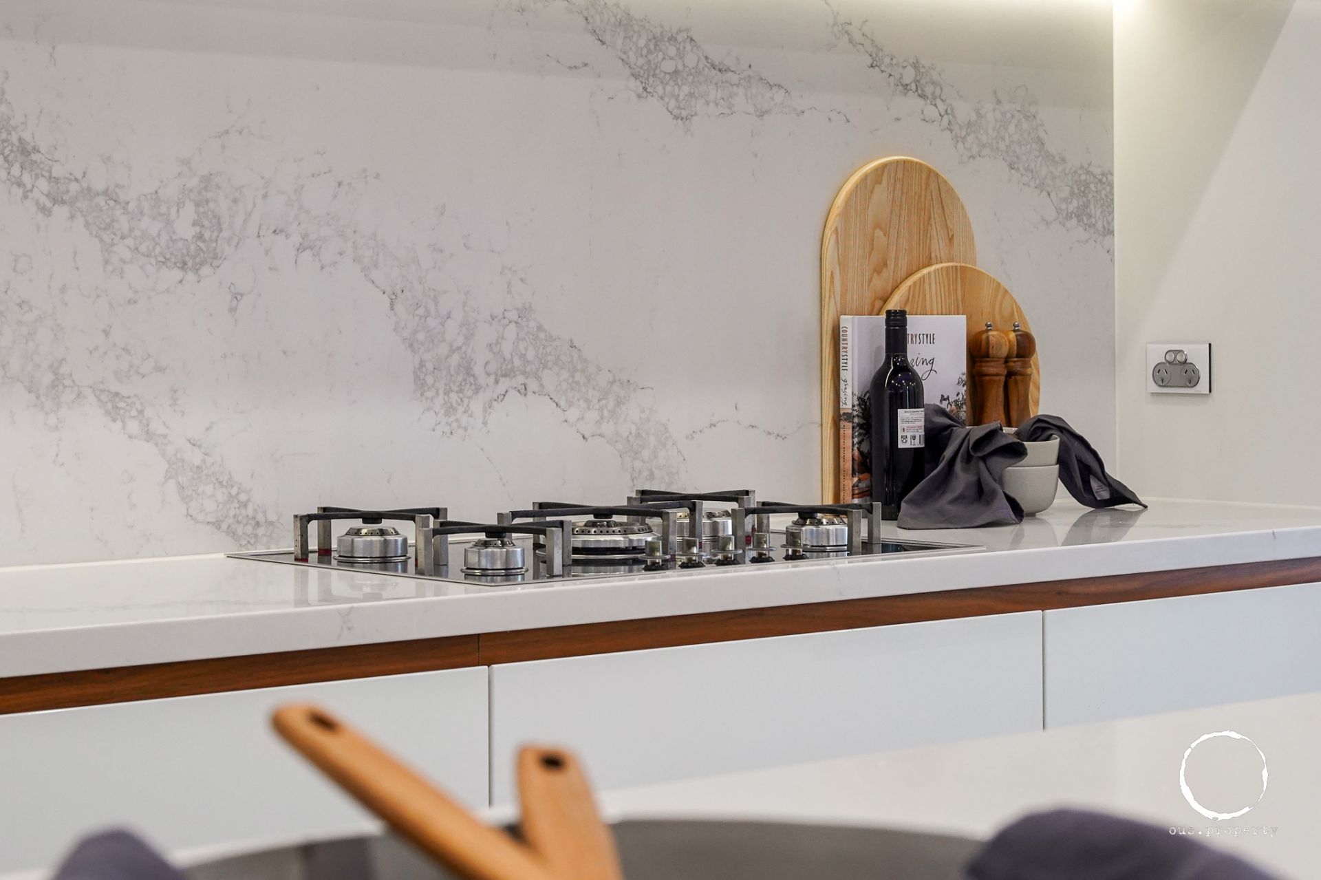 • Dual ovens, gas cooktop, integrated fridge/freezer, coffee machine, microwave, dishwasher