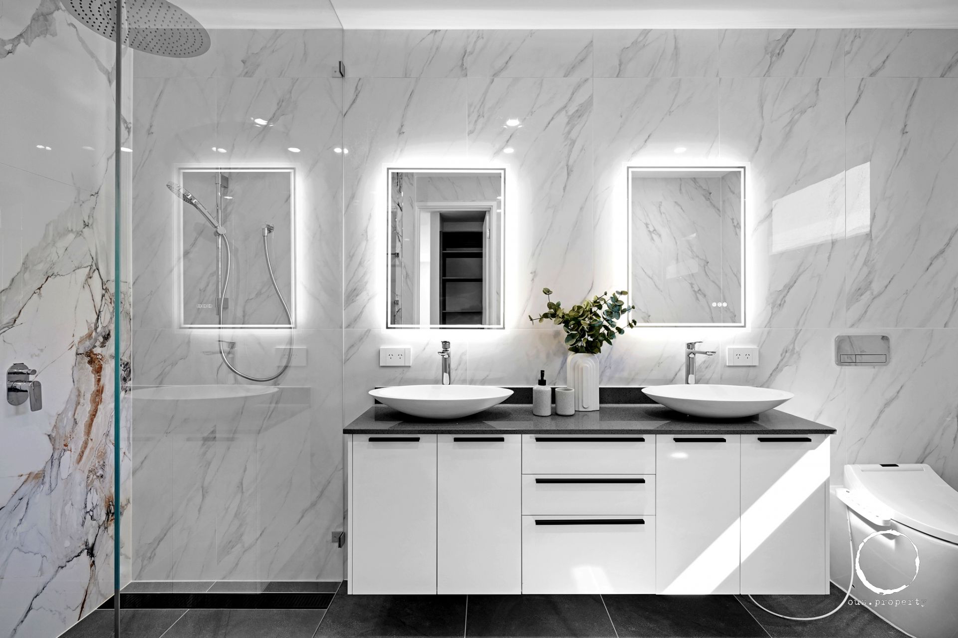 • Master ensuite: freestanding Villeroy & Boch bathtub, bidet w/c, double vanity with backlit mirrors