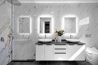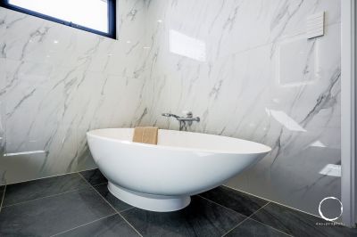 • Italian endless marble feature walls in bathrooms