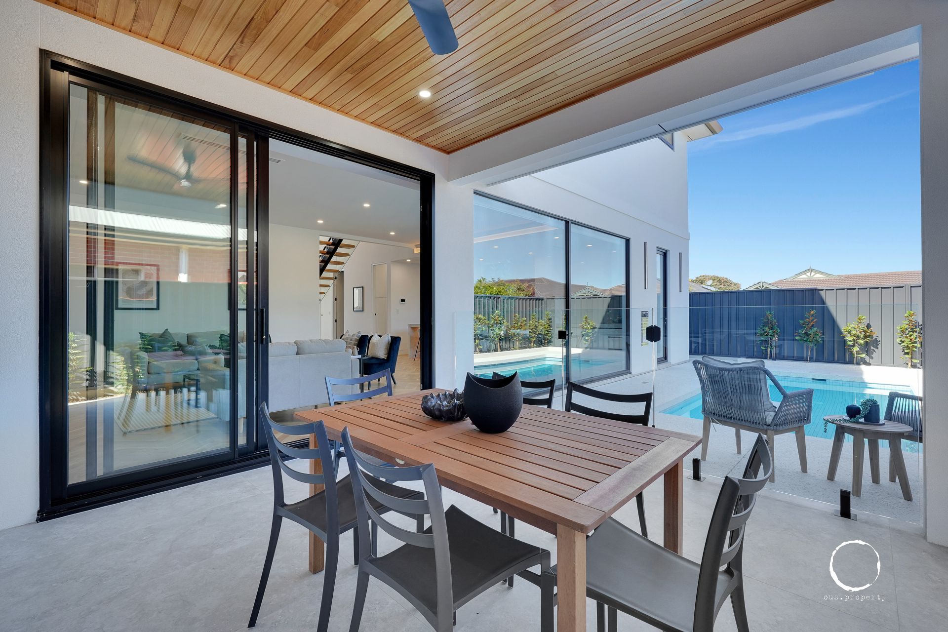 • Motorised blinds to the entry hallway, alfresco, and living room