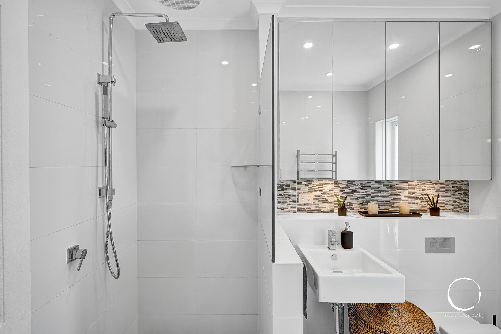 • Luxurious new bathroom featuring floor-to-ceiling tiles, underfloor heating, in-wall cistern, rain showerhead, downlights