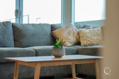 When a contemporary apartment meets a waterfront location, you're living the dream. And this shipshape one-bedroom apartment brings chic and sassy interior design to waterside living with next-level, champagne-and-caviar outdoor entertaining.