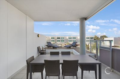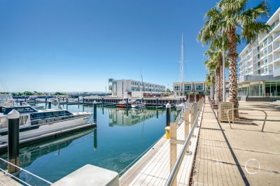 Perched alongside the marina, this second floor corner apartment is the one with all the X-factor – a sweeping extended balcony combining 36sqm of undercover and outdoor space for maximum outdoor enjoyment.