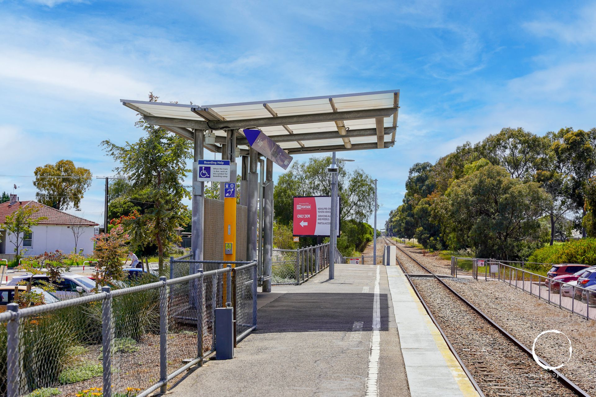 - Single carport with auto panel lift door and internal access