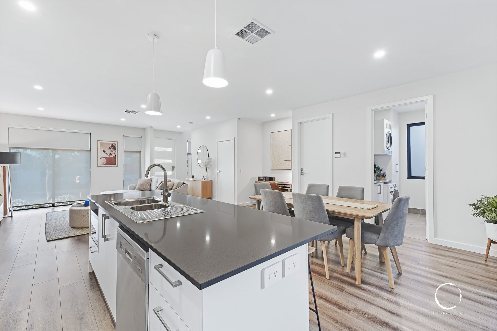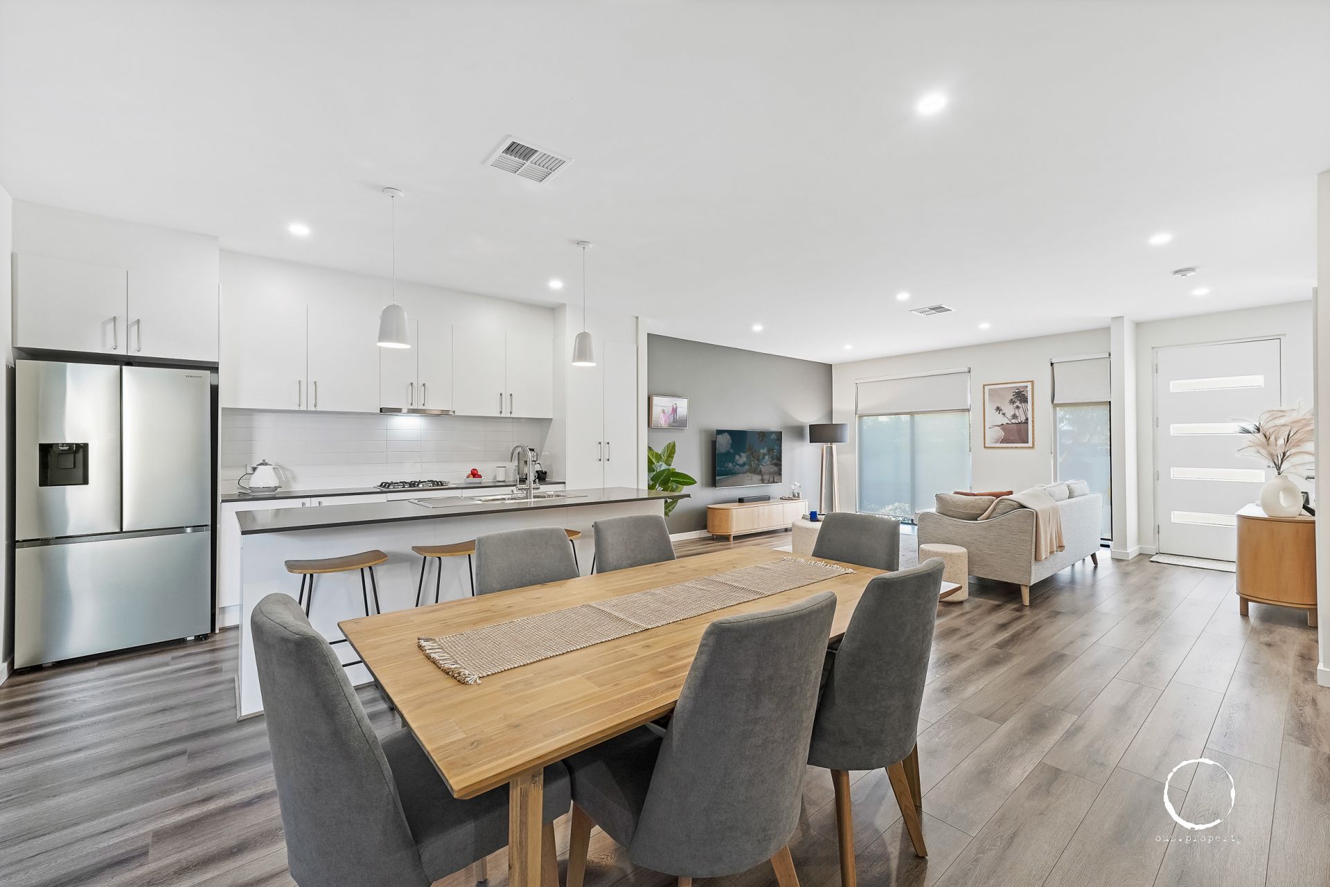 Upon entering, you'll immediately appreciate the expansive, open-plan layout that defines the downstairs living areas, with high ceilings and natural light enhancing the sense of openness.